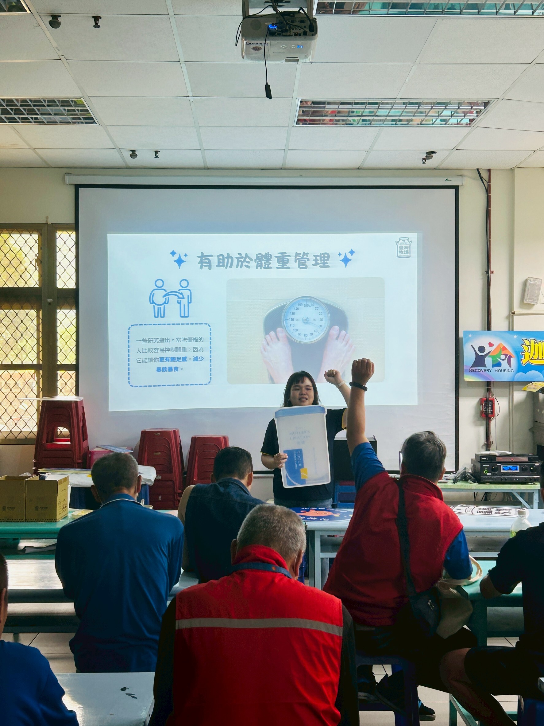 一開始先由主持人詳細的向住民們解說優格是多健康的食物,當然還有不可或缺的製作教學