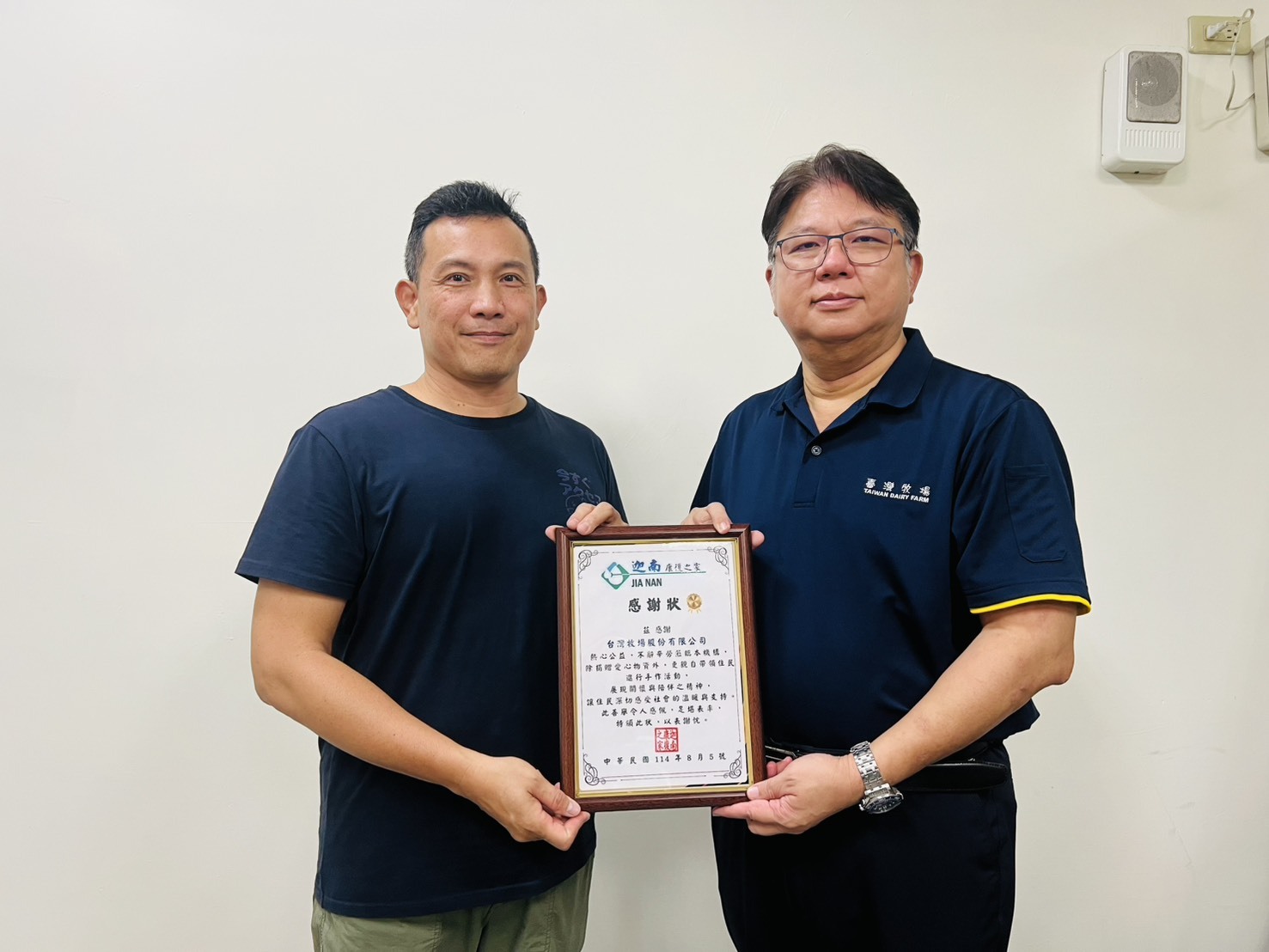 (左為迦南康復之家 負責人許先生/右為台灣牧場黃總經理)