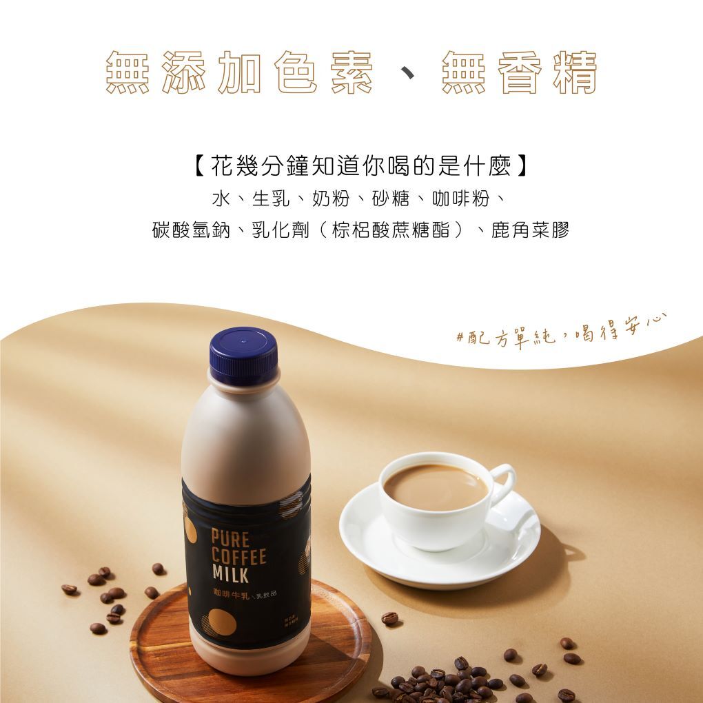 使用台灣牧場優質牧場乳源的新鮮生乳,加入優質乳粉與特選咖啡原料調和而成,無添加色素及香精料,口感醇厚,香氣獨特。