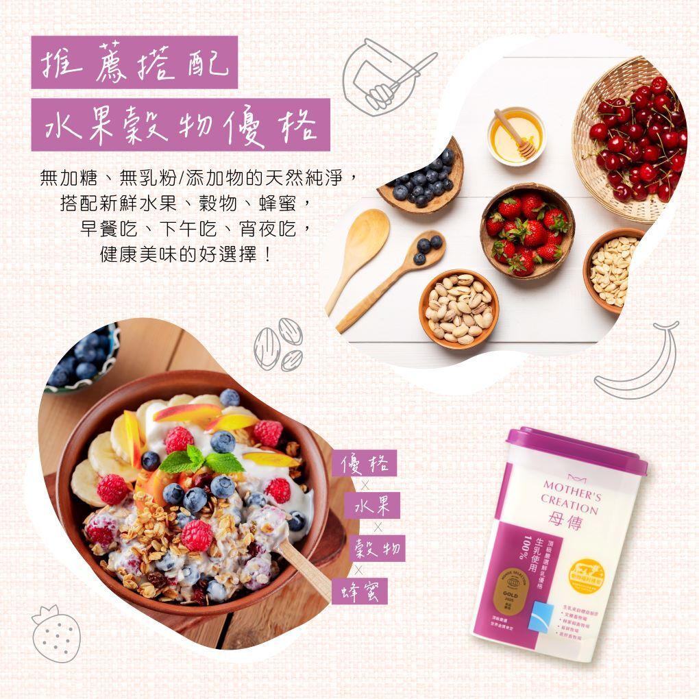 以百分之百全生乳與嚴選菌種發酵製作而成,不添加糖、乳粉調味,亦無任何添加物,風味清新細緻滑順,乳香四溢,兼具天然與口感的美味食品。2024全新改版上架,全新菌種與包裝─就想給孩子最好的,母傳嚴選。